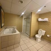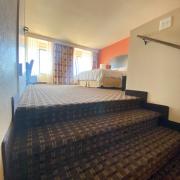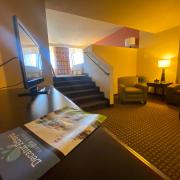 The Abraham Lincoln Suite is a luxurious bi-level designer suite with a contemporary look planned for a comfortable stay. The upper level contains a king-size bed with plush-top mattress. The lower level has a sitting area with pull-out sleeper sofa, non-stocked wet bar, Keurig coffee maker, microwave, and mini-refrigerator. The newly-designed bathrooms offer two sinks with granite counter tops, a whirlpool tub, and plenty of space to prepare for your day in the morning. Enjoy the oversized desk and complimentary wireless internet access or just relax in comfortable seating while watching your favorite shows on the 2 LED flat screen TVs.