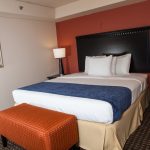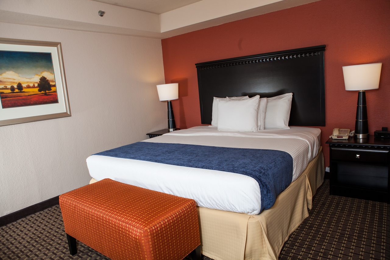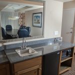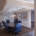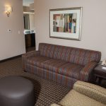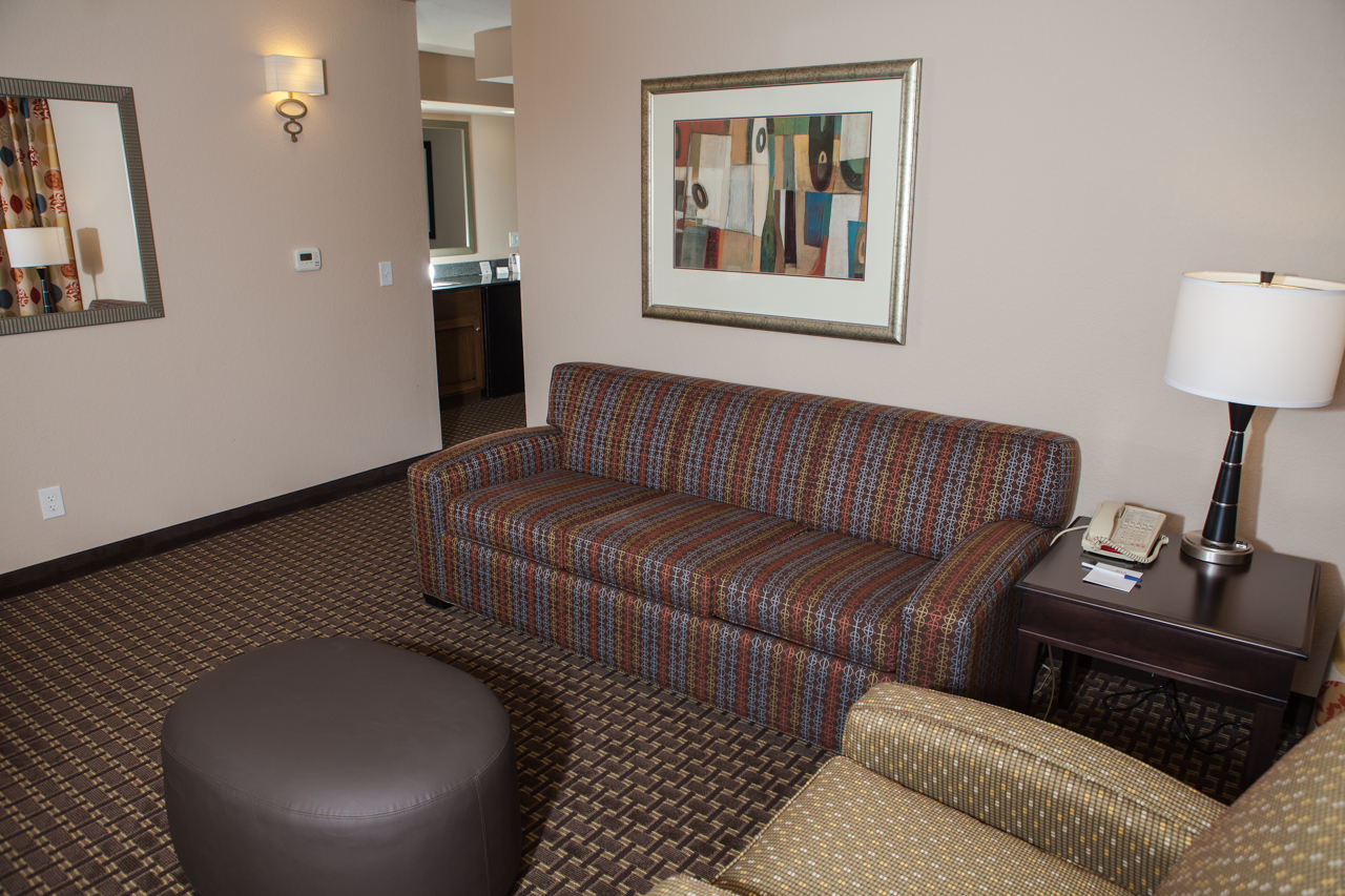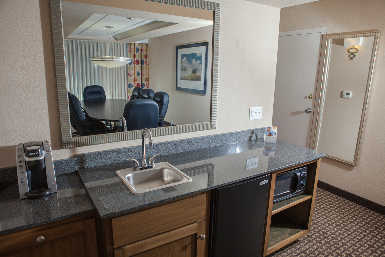 The Millikin Suite is a luxurious three-room suite with a contemporary look planned for a comfortable stay and perfect for the meeting planner. The unique living room set up offers a queen-size sleeper sofa as well as a lounge chair; additionally, it offers a board room with 8 chairs, and a granite-top, non-stocked wet bar with mini-refrigerator and microwave, perfect for small meetings or family gatherings. The bedroom has a king-size bed with a plush-top mattress. Enjoy the oversized desk and complimentary wireless internet access or just relax in the comfortable seating while watching your favorite shows on the 2 LED flat screen TVs.